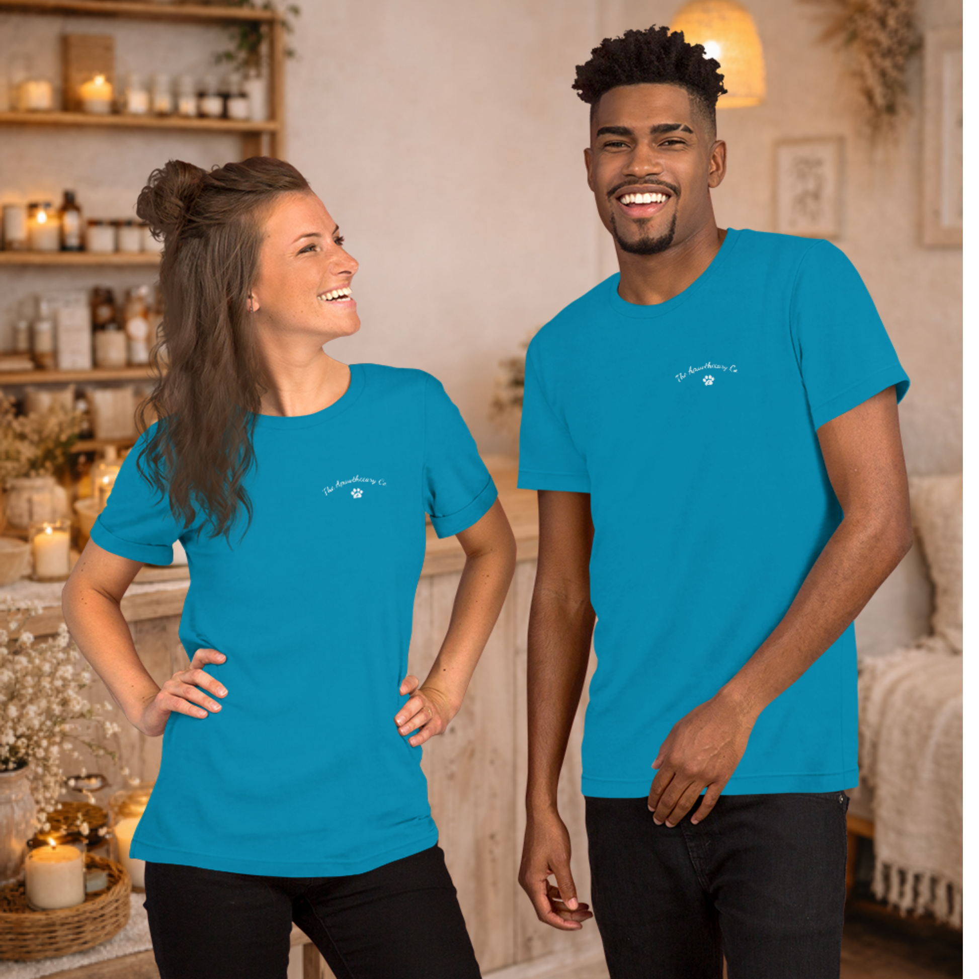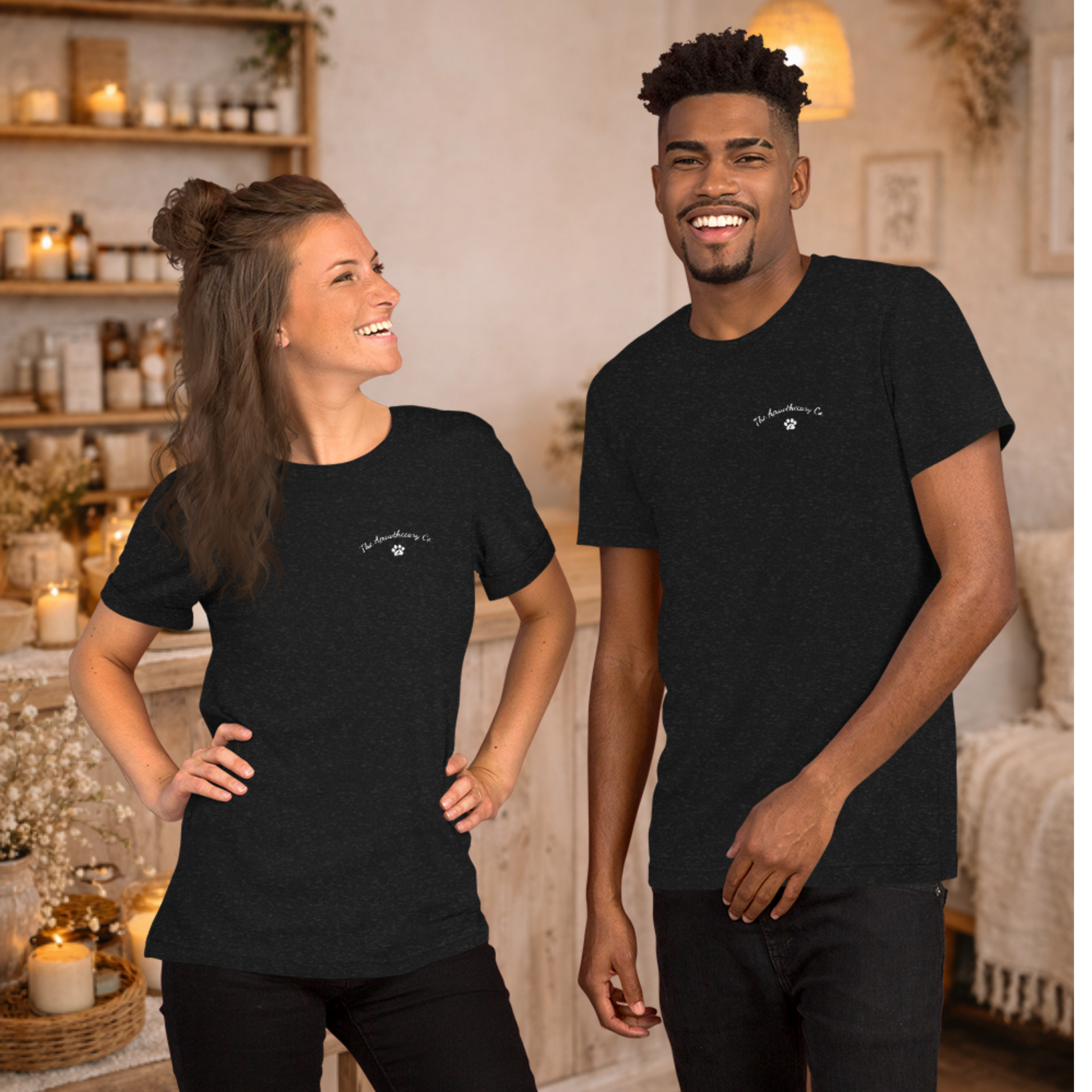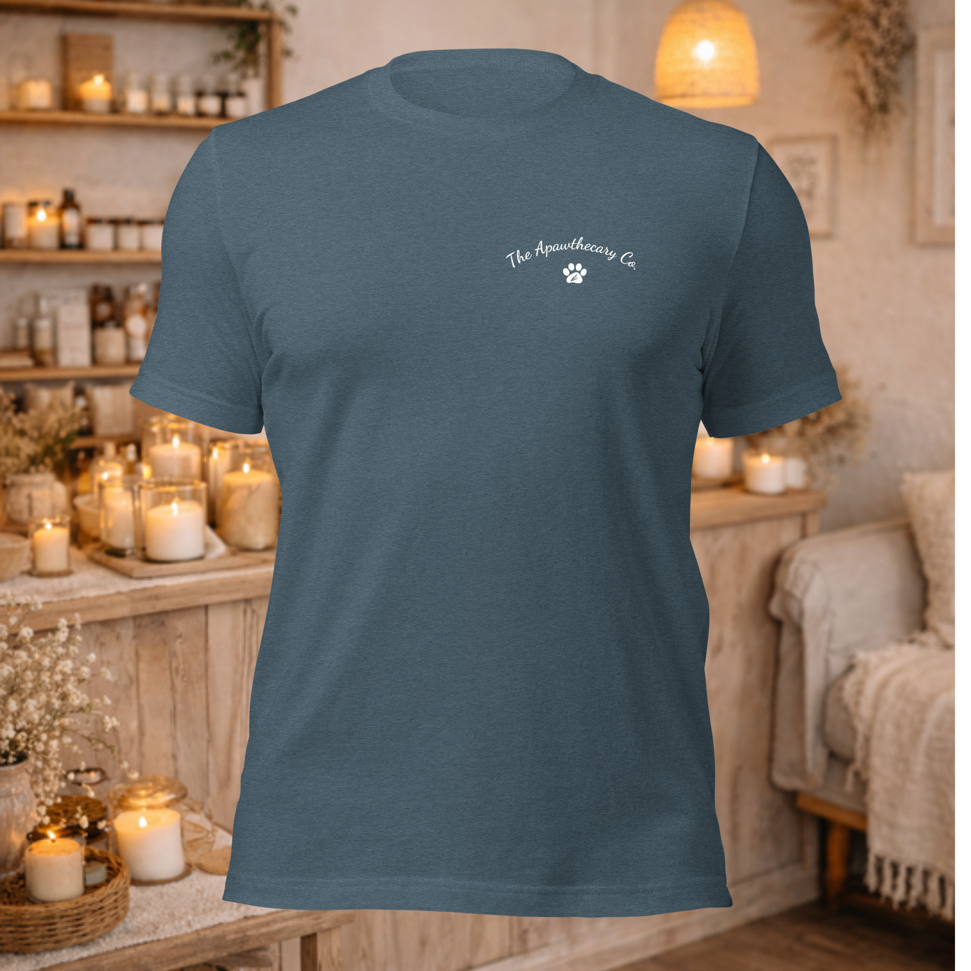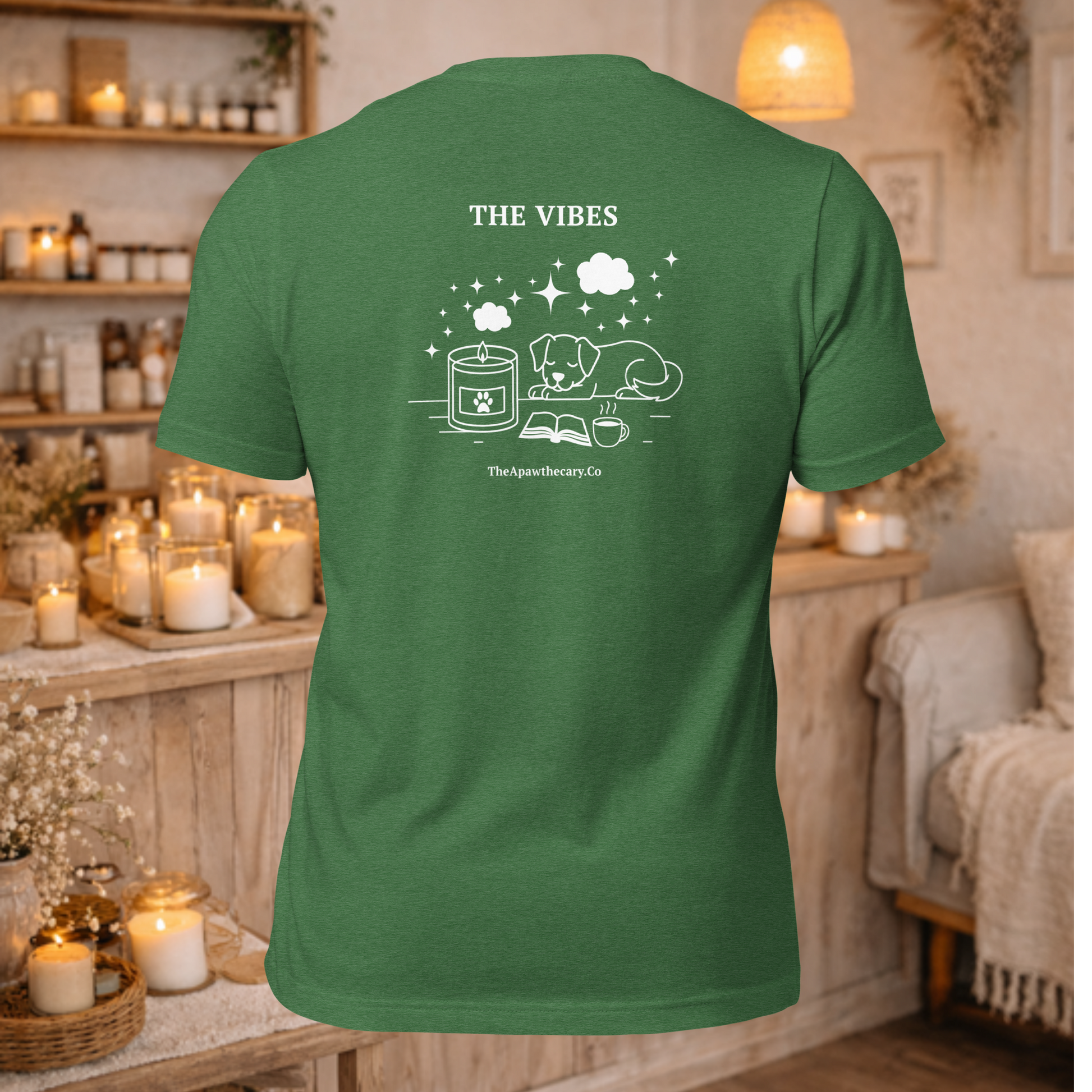 The Vibes Tee is soft, lightweight, and made to feel good the second you put it on. Designed with our clean front branding and “THE VIBES” across the back paired with our cozy scene, it’s a wearable mood — candle lit, coffee close, dog curled up, expectations low.